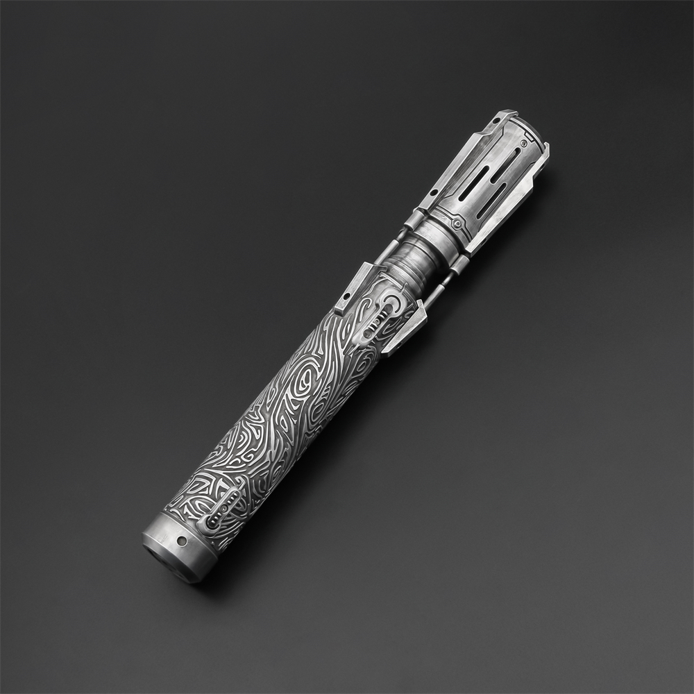 Gleichgewicht der Großmeisterin: Dieser Saber ist eine hochwertige Interpretation im Stil der Waffe von Satele Shan. Bitte beachte, dass es sich um eine design-optimierte Variante von TXQ und kein 1:1-Lizenzreplika handelt. Das Design besticht durch seine außergewöhnliche Eleganz und die kunstvollen, organisch wirkenden Gravuren auf dem hochwertig polierten Aluminium-Griff. Als Doppelklingen-Lichtschwert konzipiert, vereint es eine beeindruckende Länge mit einer überraschenden Leichtigkeit. Die filigranen Details am Emitter und die fließenden Linien des polierten Aluminiums machen diesen Griff zu einem der ästhetischsten Kunstwerke der Alten Republik. Satele Shan, die Großmeisterin des Jedi-Ordens und Nachfahrin von Revan und Bastila Shan, führte diesen Stab als Symbol für Hoffnung und Standhaftigkeit. In einer Zeit des totalen Krieges gegen das Sith-Imperium war ihre Klinge der Fels in der Brandung. Das Lichtschwert spiegelt ihre ruhige, aber entschlossene Natur wider – eine Waffe, die für maximale Verteidigung und präzise Gegenangriffe geschaffen wurde. Dieser Saber ist nicht nur ein Instrument des Kampfes, sondern ein Zeugnis für die unbeugsame Stärke eines Jedi, der die Bürde der Führung in den dunkelsten Zeiten trägt.